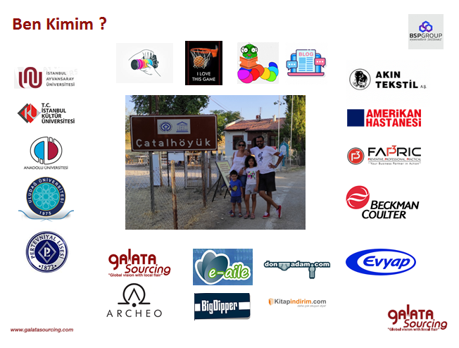 Ben kim miyim ? Ortadaki ailem eşim, kızım, oğlum ve ben, sağdaki sütün okullarım, son mezuniyetim Turizm rehberliği bölümünden bu sebepledir ki ortadaki fotoda Çatalhöyük var:) üste hobilerim, fotoğraf çekmek, basketbol oynamak, kitap okumak ve blog yazmak en başlıları, en sağda profesyonel olarak çalıştığım kurumları görebilirsiniz. En alttakiler mi ? Onlar benim bir şekilde içinde bulunduğum girişimlerim, kitapindirim battı:(, e-aile battı, bigdipper(e-akin) battı, donadam battı, archeo çok su aldı ama şükür henüz batmadı:), Galata Sourcing bakalım bize neler getirecek ? Ünlü yazar Tolstoy’un Mutlu aileler birbirine benzerler, her mutsuz aileninse kendine özgü bir mutsuzluğu vardır dediği gibi batmayan şirketler birbirine benzer ama her batan şirketin kendine özgü bir hikayesi vardır diyerek, bu başarısız olmuş girişimlerin hikayesini başka bir yazıya, etkinliğe bırakıyorum.