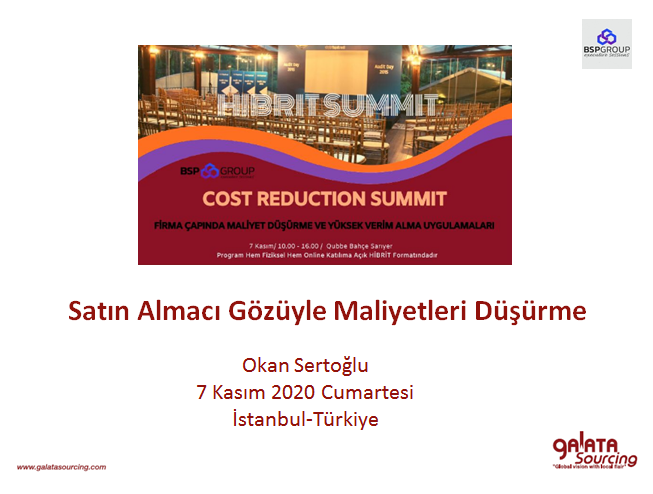 Başlığı özellikle satın almacı gözüyle maliyetleri düşürme şeklinde koydum. Çünkü değer zincirinin her halkasında, her halkanın her atomunda bir maliyet düşürme fırsatı gizli, insan kaynaklarından, kalite kontrole, üretim planlamadan, finansa, araştırma geliştirmeden, pazarlamaya burada adını sayamayacağım her noktada bir iyileştirme ve maliyet düşürme fırsatı var, bu sebeple konuyu biraz daha daraltıp satın alma gözüyle maliyet azaltma şeklinde özele inmek istedim.