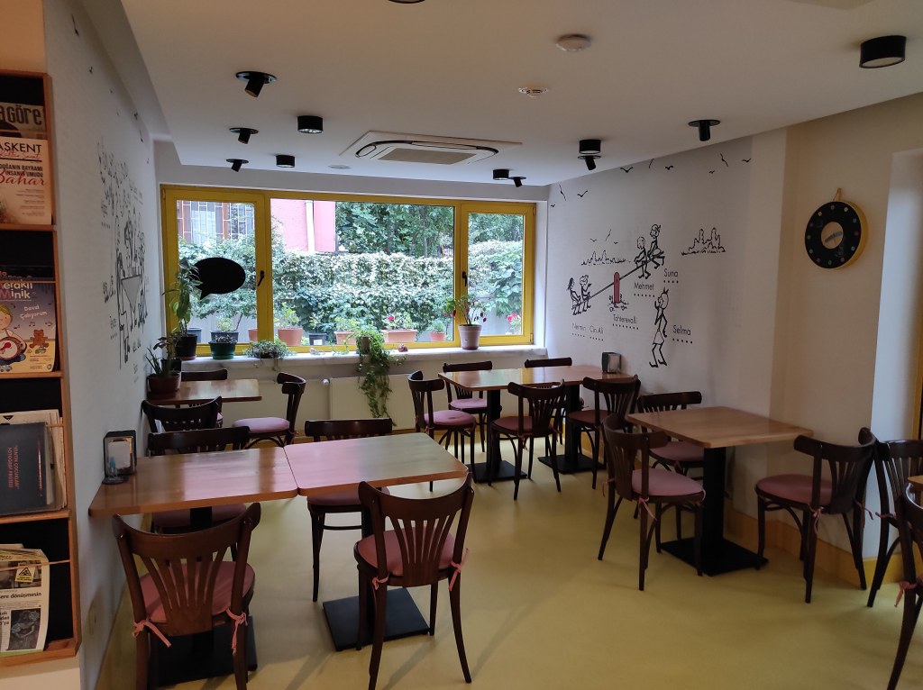 Hafif yağmurun da etkisi ile oldukça serin bir Ağustos Cumartesi’nde, ülkemizdeki başta yangınlar olmak üzere tüm olumsuzluklara rağmen neşeli kalabalıkların hakim olduğu Tunalı Hilmi’de yürümenin tadını çıkartmaya çalışıyor, birkaç dakika da olsa gündemden uzaklaşıp, nefes alıyorduk hatta kendimize bir amaç da edindik ve konsept bir kafe olarak var olduğunu düşündüğümüz Van Gogh‘a doğru yöneldik. Birbirinin taklidi tek düze insan yetiştirmeye hizmet eden kahve zincirlerinin aksine, bu tür özgün mekanlar da kültürel derinliğimize direkt etki yaptığı için çok önemli, hatta müzelerimiz kadar önemli.